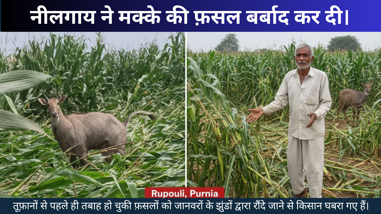 रुपौली में नीलगाय का आतंक: मकई फसल को तोड़-फोड़ कर तबाह किया, किसान रो-रोकर कर रहे गुहार